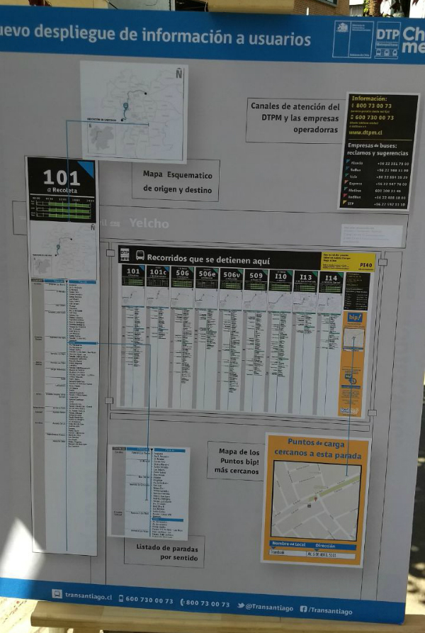 Transantiago renueva paraderos con información detallada sobre recorridos y puntos de carga más cercanos
