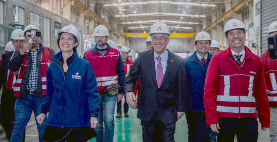 Presidente Sebastián Piñera inspecciona primeros trenes armados en Chile para el Metro de Santiago