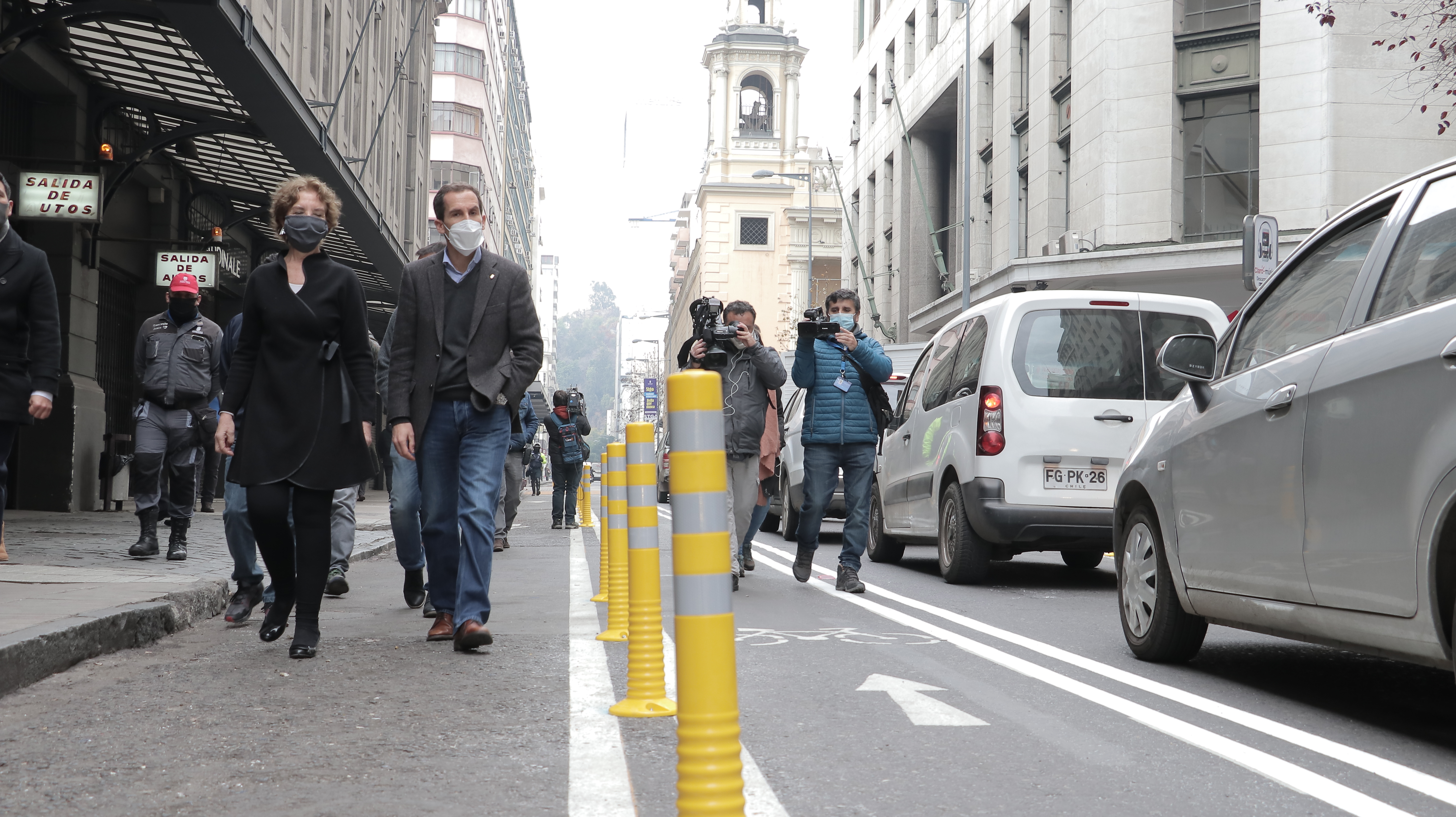 Los trabajos de demarcación e instalación de elementos segregadores se encuentran ejecutados en su totalidad en entre las calles Morandé y San Antonio, zona que registra un alto flujo peatonal debido a la concentración de locales comerciales, de salud y administrativos.